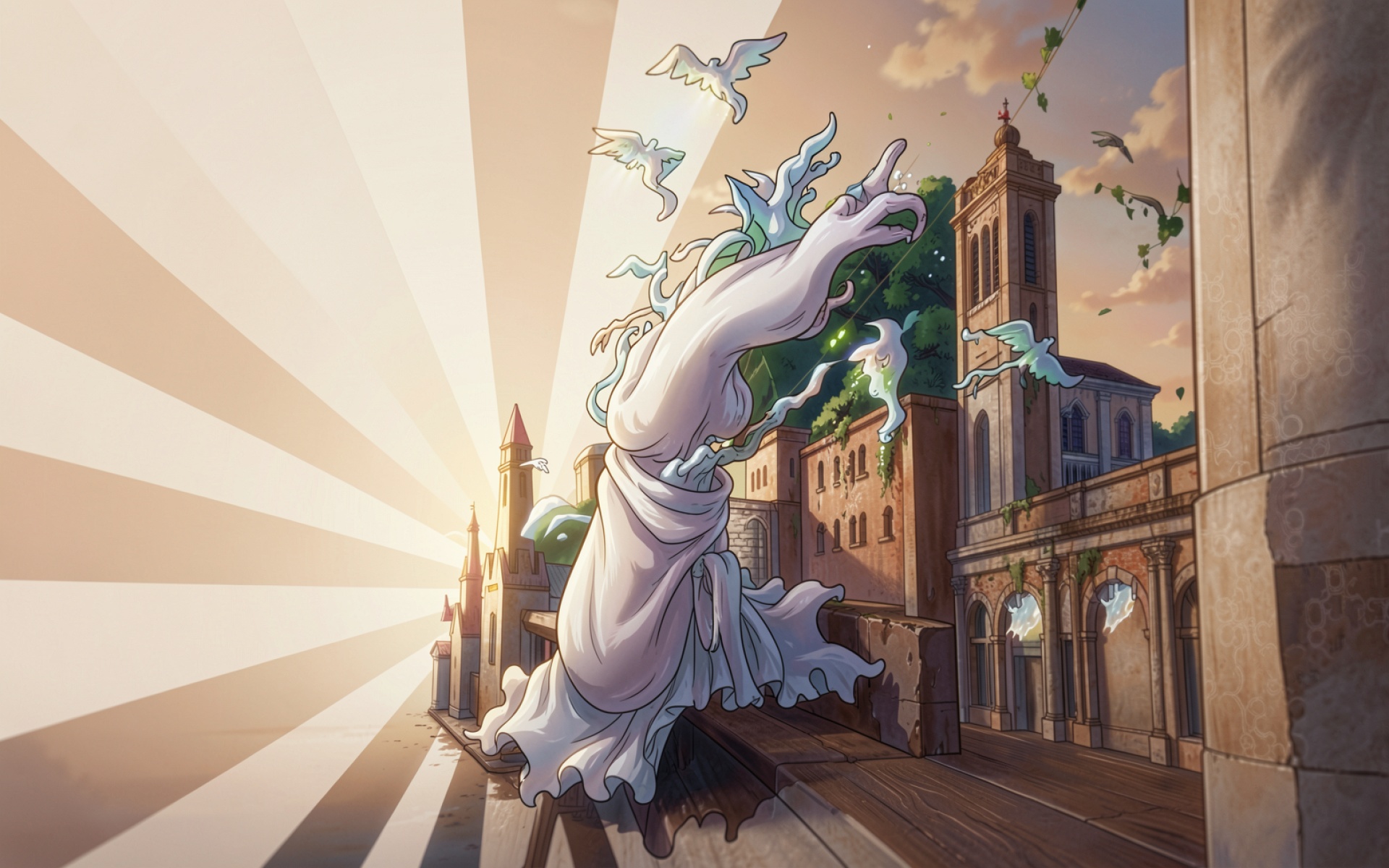 Белая статуя ангела в старинном городе