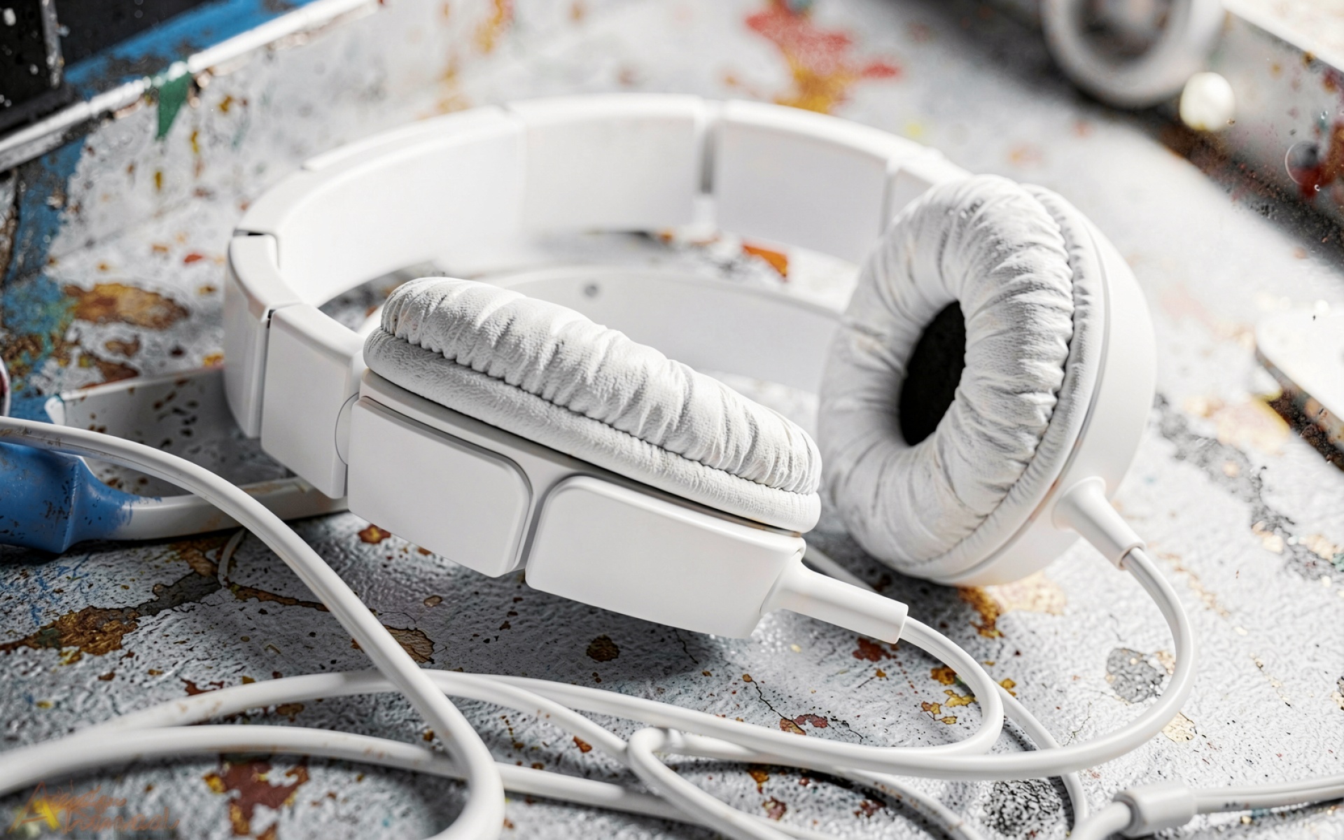 Белые наушники на текстурированном бетонном фоне