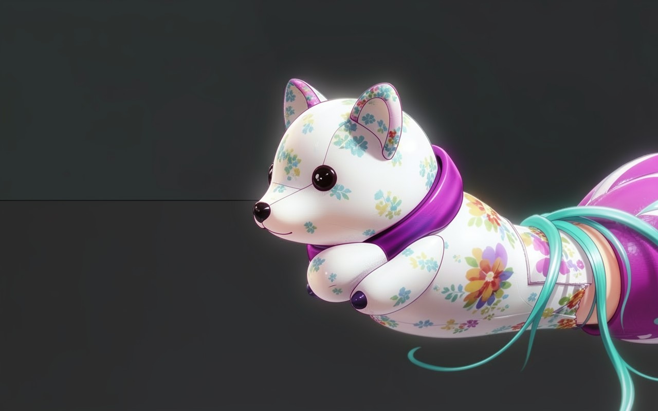 Белый кицунэ с цветочными узорами в стиле аниме