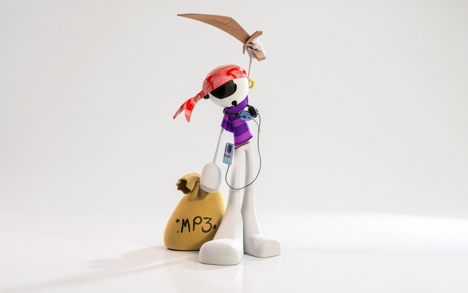 Белый 3D персонаж пират с мечом