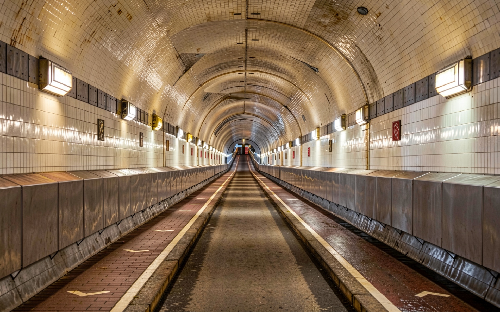 Белый кафельный тоннель с теплым освещением