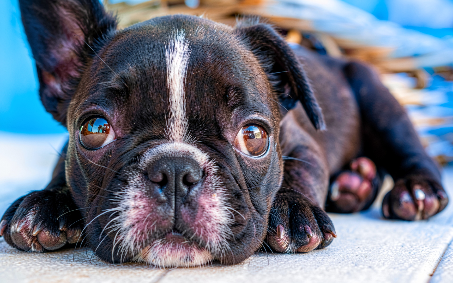 Щенок французского бульдога черный белый фон