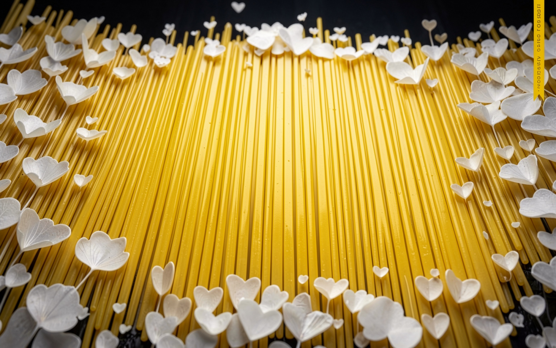 Желтые макароны спагетти с белыми лепестками