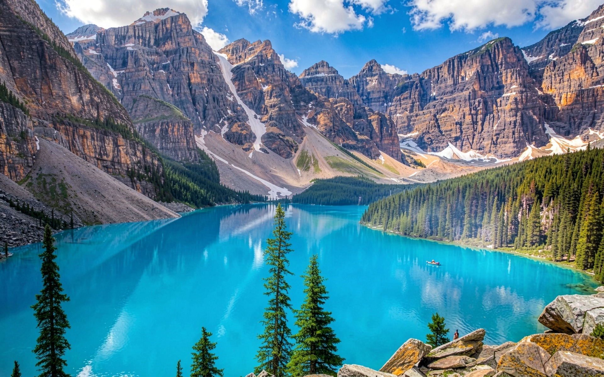 Бирюзовое озеро Морейн в окружении скалистых гор