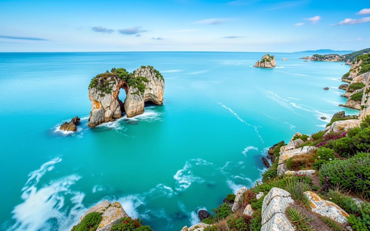 Скалистая арка в бирюзовом море при дневном свете
