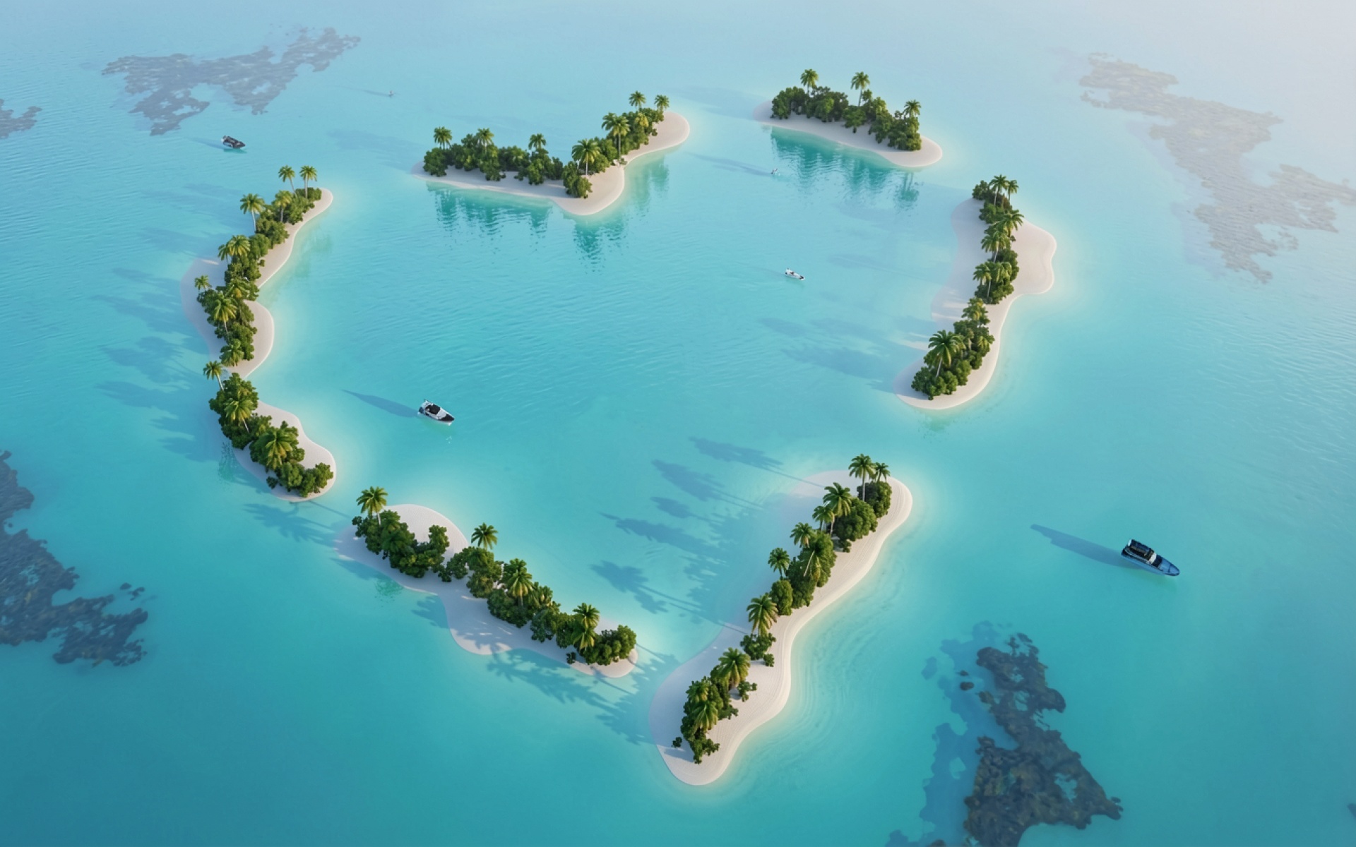 Тропический остров в форме сердца бирюзовый океан