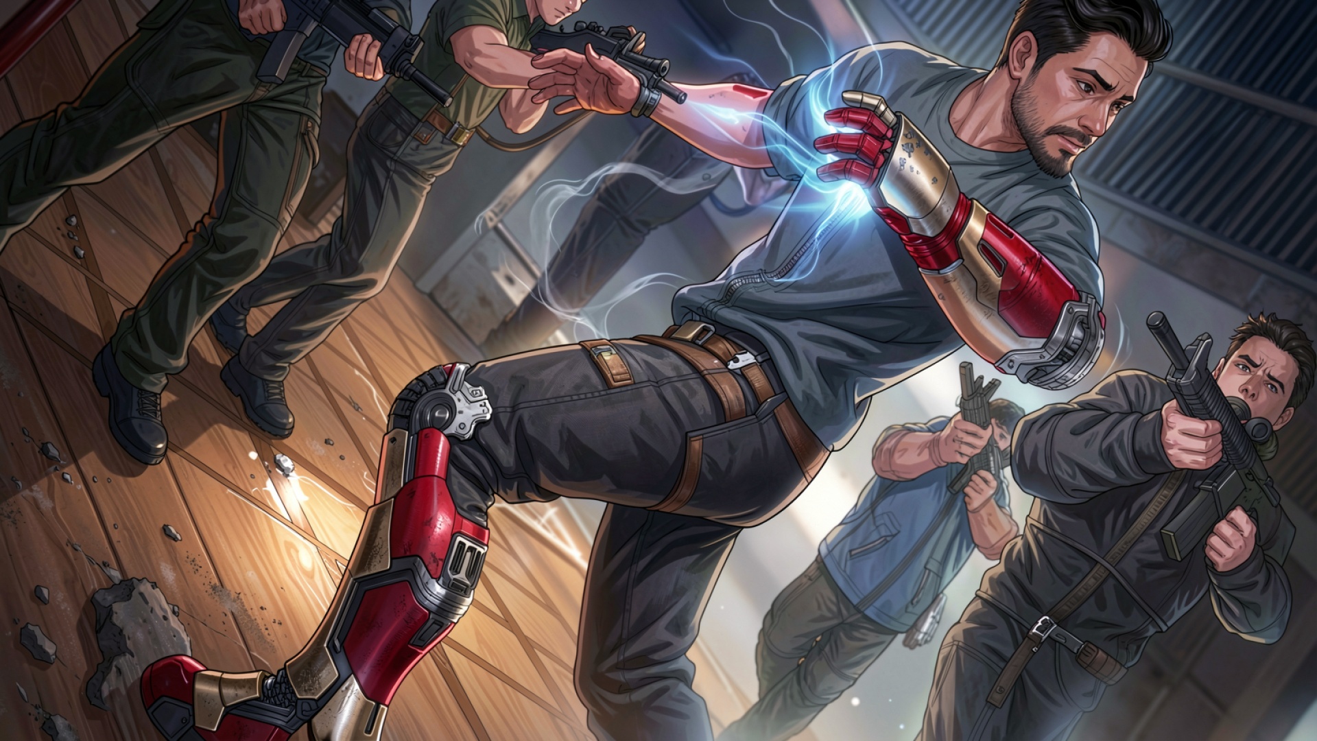 Боевой киборг в динамичном сражении индустриального стиля