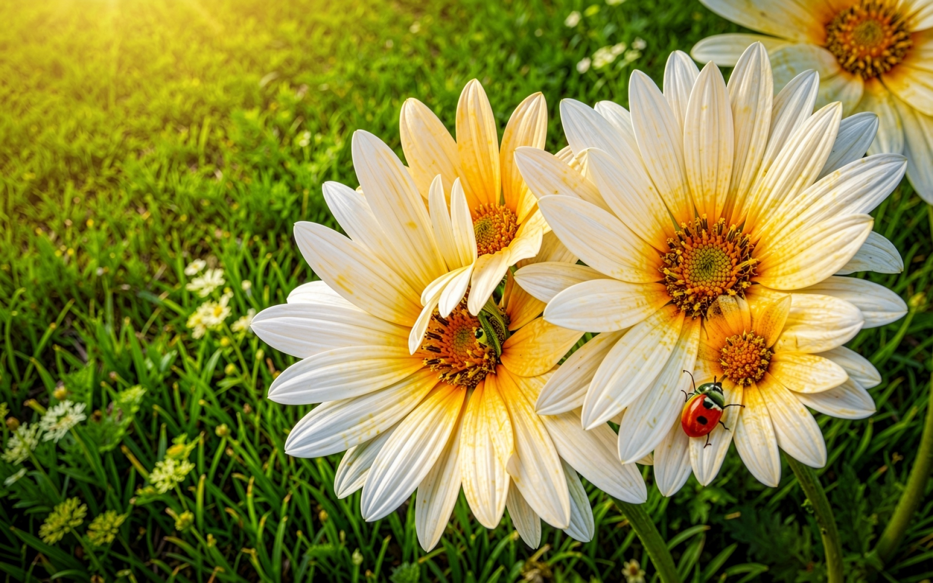 Белый цветок остеоспермум с красным божьим глазом