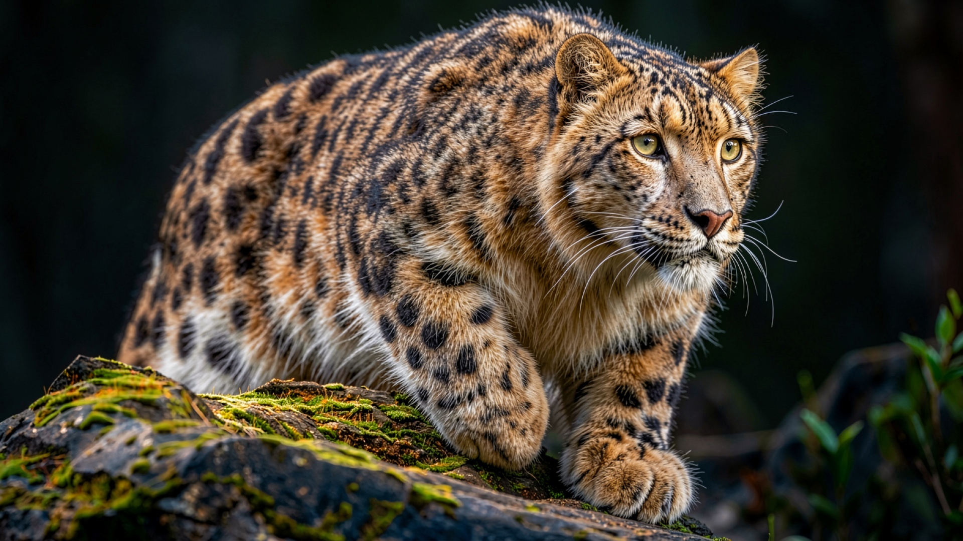 Дальневосточный леопард на мшистом бревне в лесу