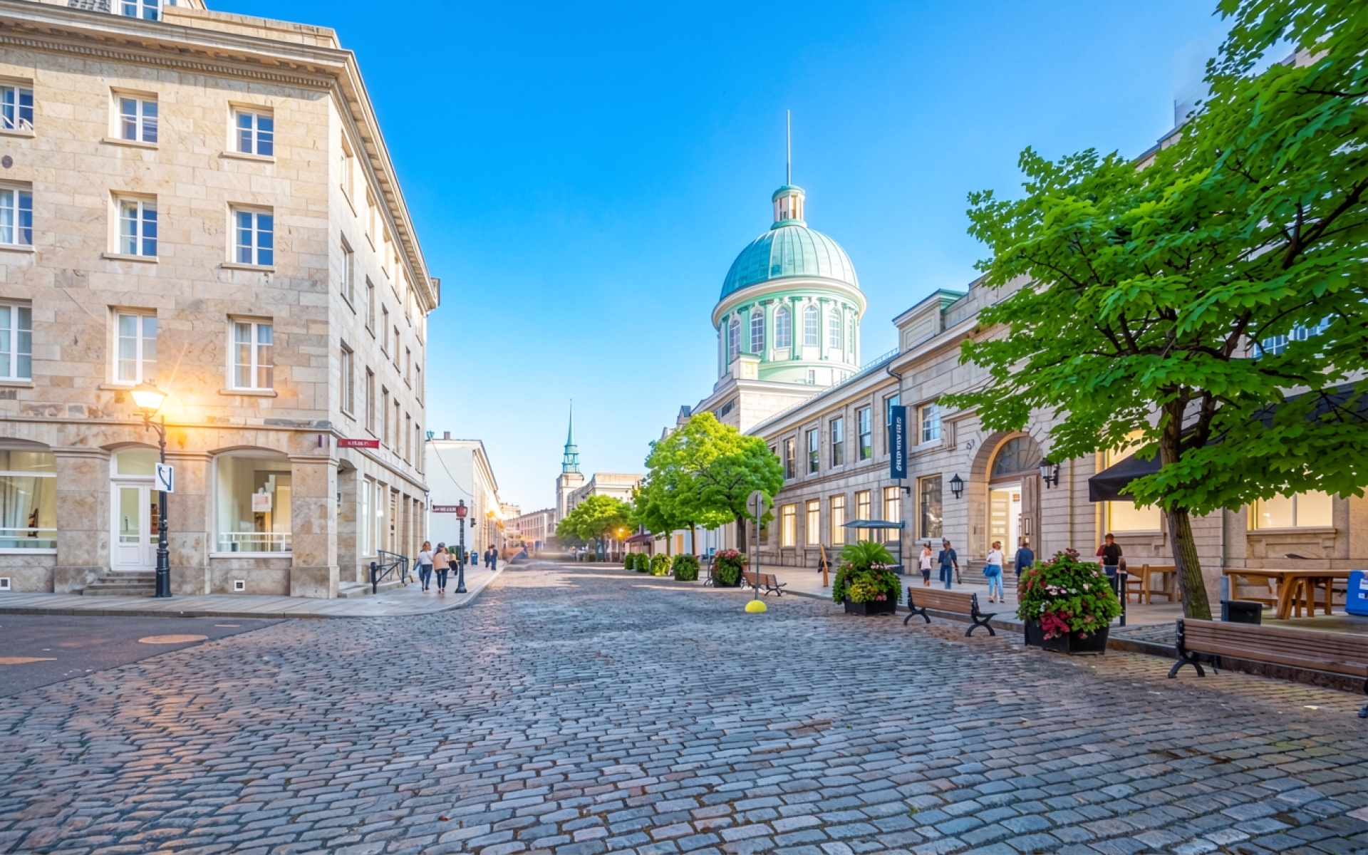 Улица Квебека с брусчаткой и куполом