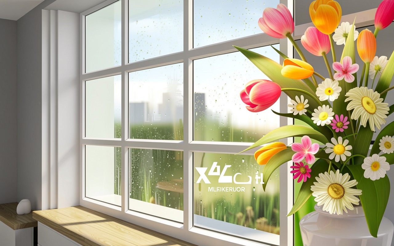 Букет весенних цветов в белой вазе у окна