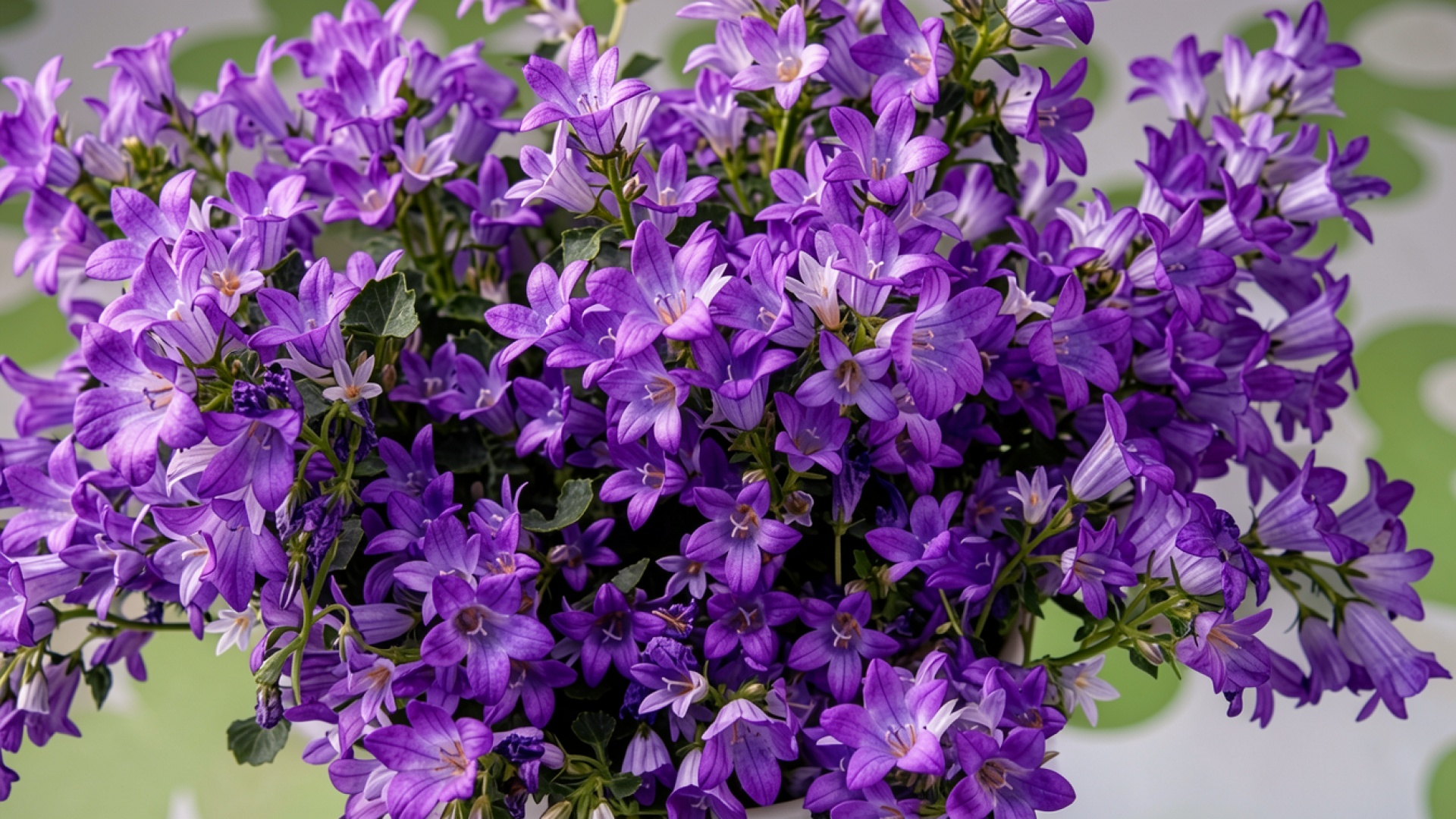 Букет фиолетовых колокольчиков на светлом фоне