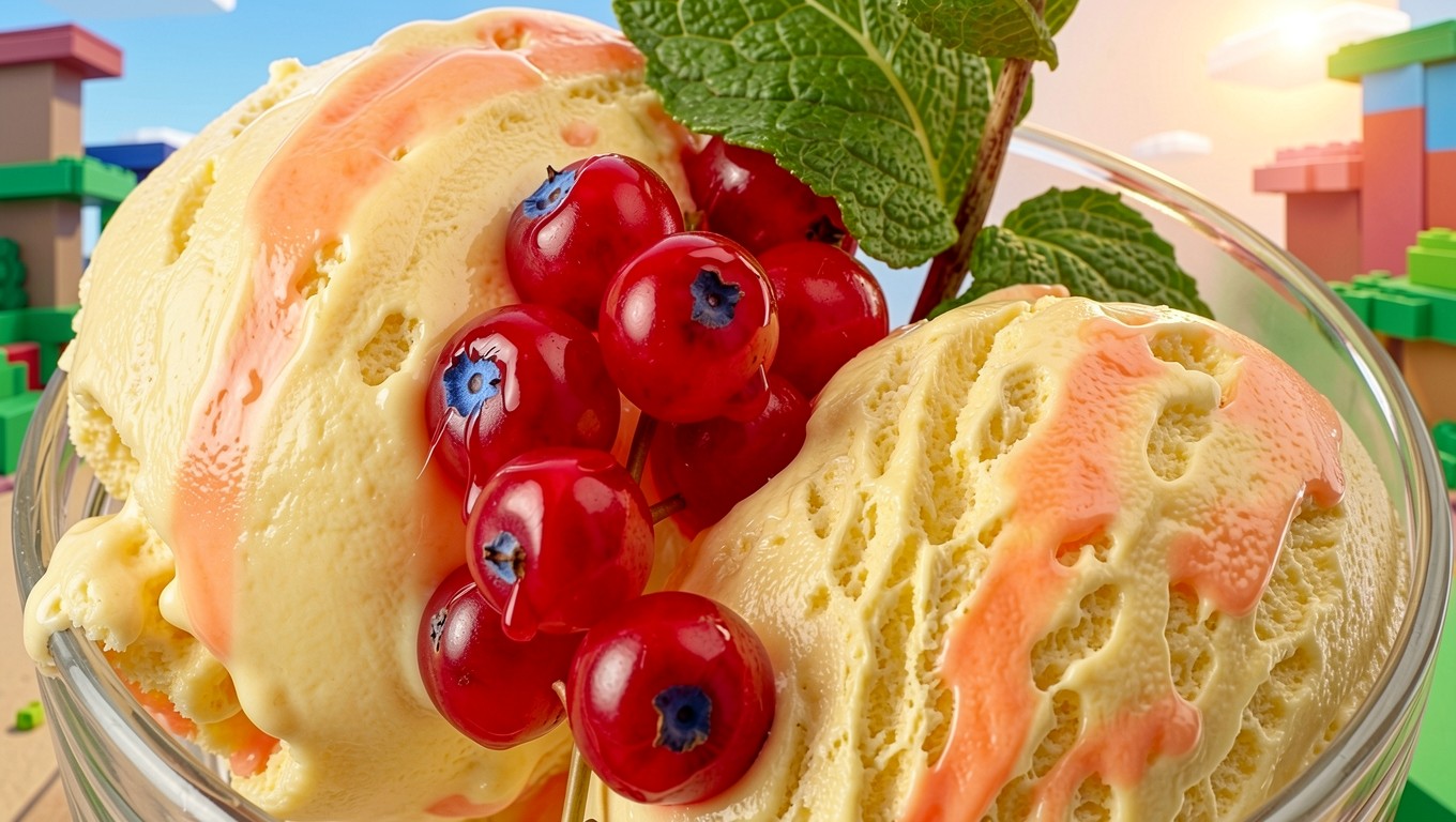 Ванильное мороженое с красной смородиной и мятой