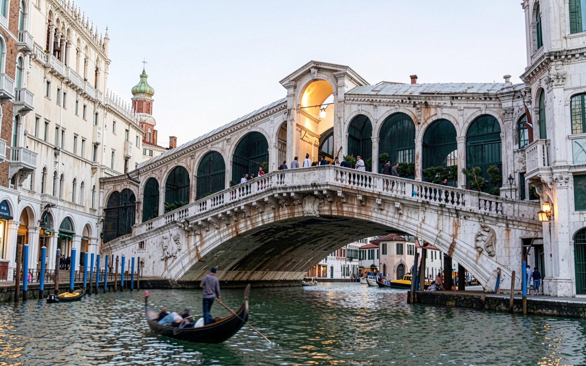 Мост Риалто в Венеции при вечернем освещении