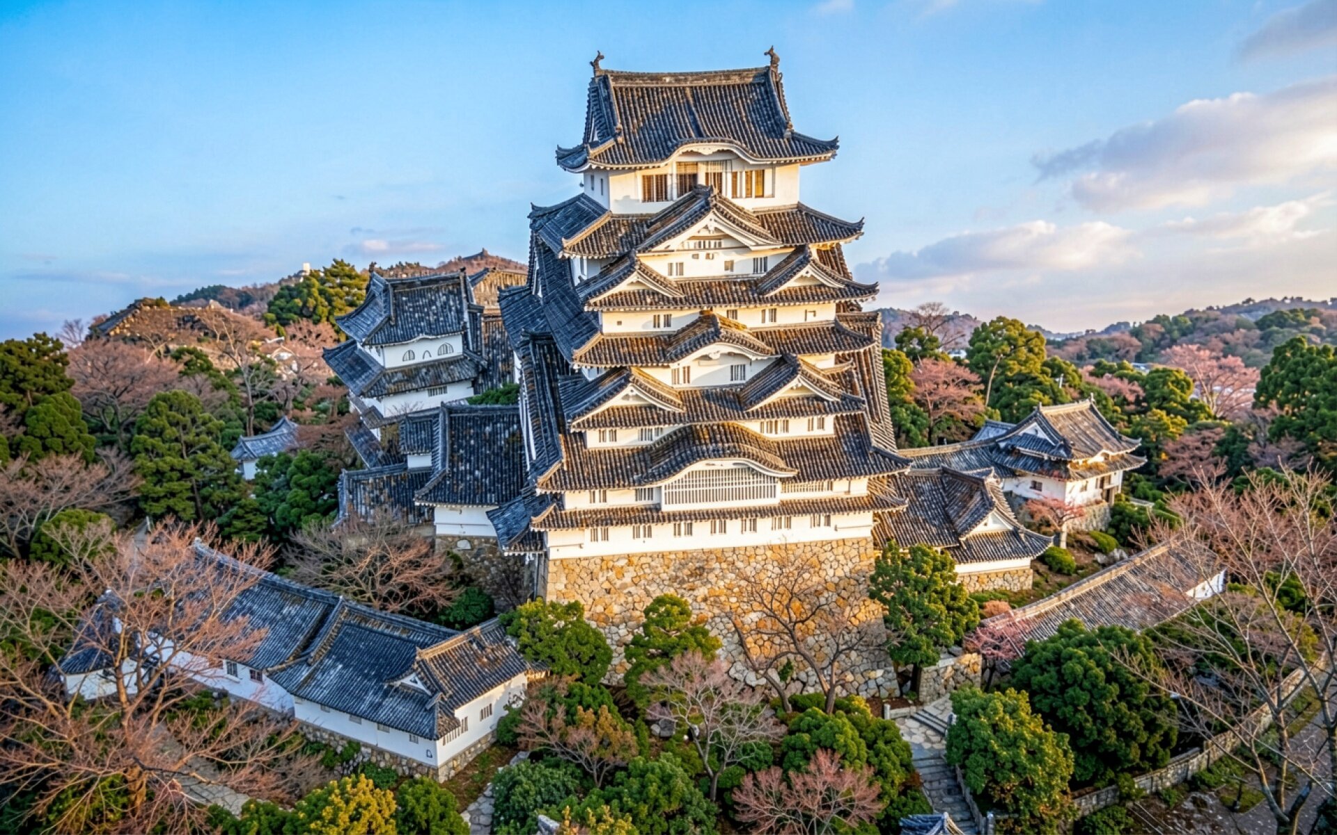 Японский замок Химедзи белый цвет весенний пейзаж