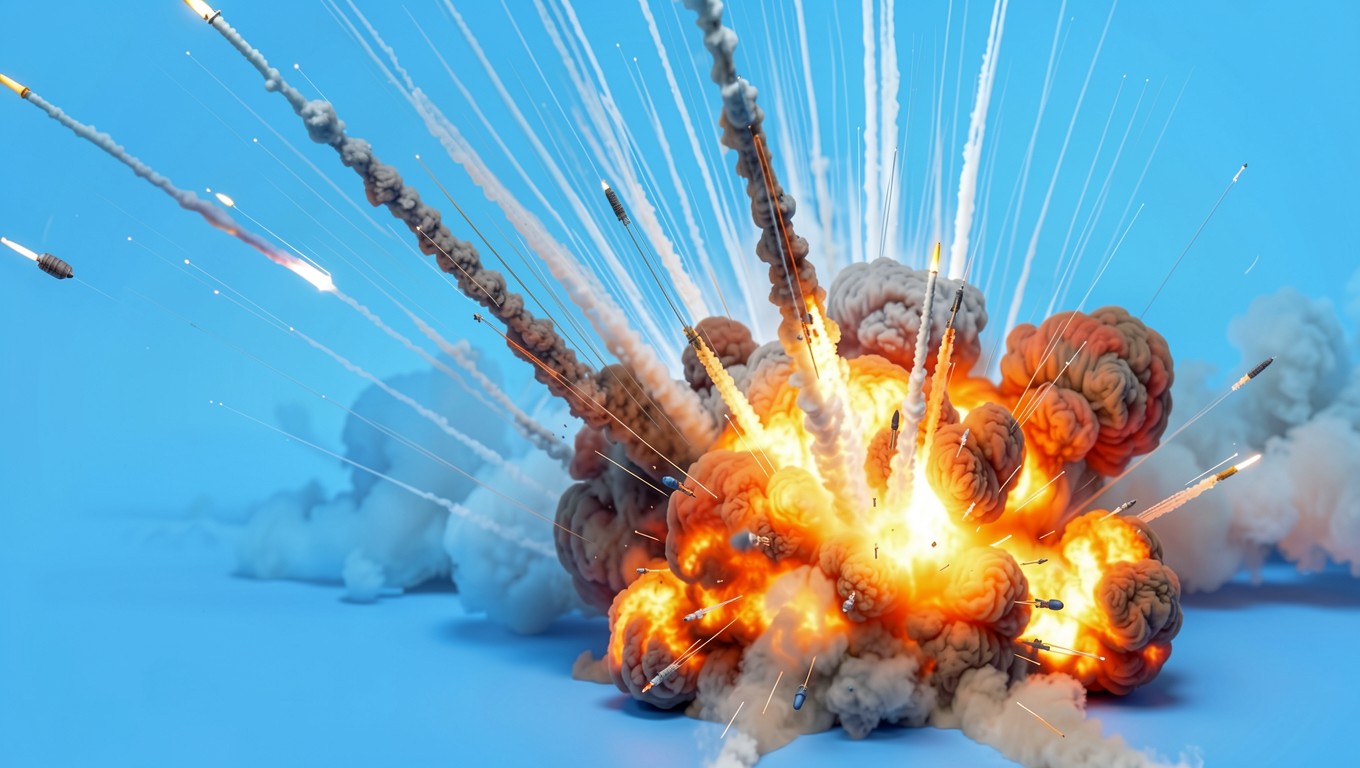Взрыв ракет в голубом минималистичном пространстве
