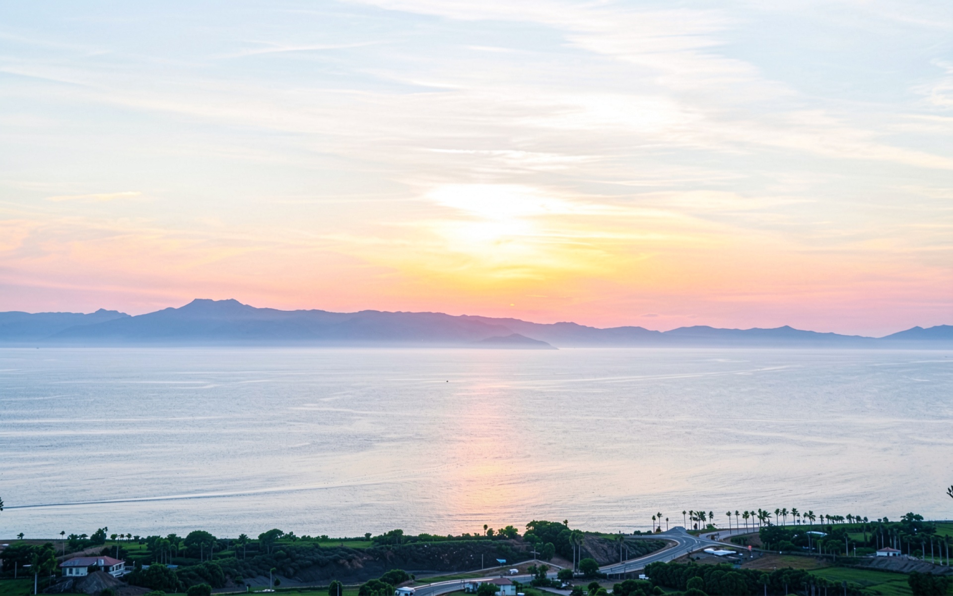 Закат над океаном с видом на горы