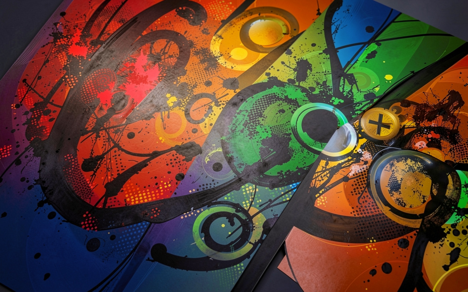 Абстрактный коллаж из виниловых пластинок ярких цветов