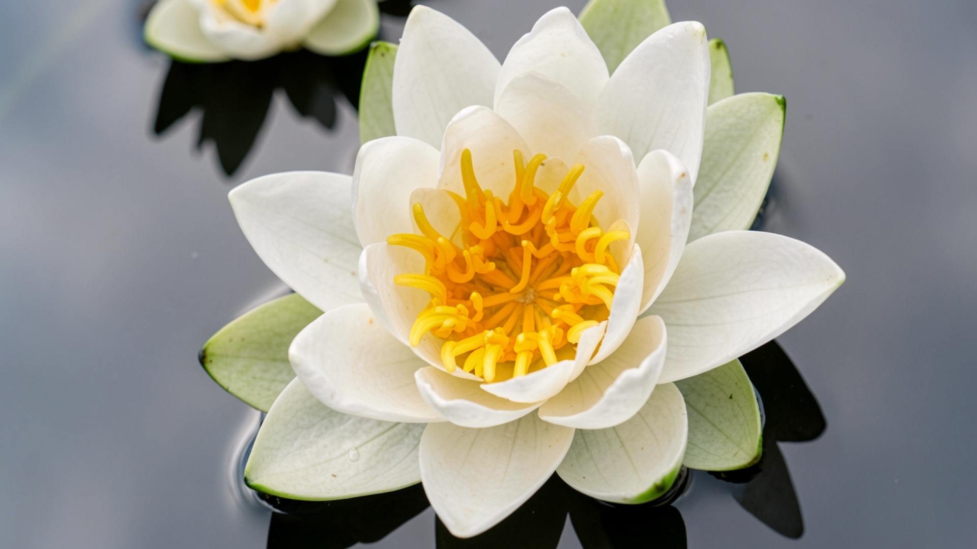 Белая кувшинка в темной воде пруда
