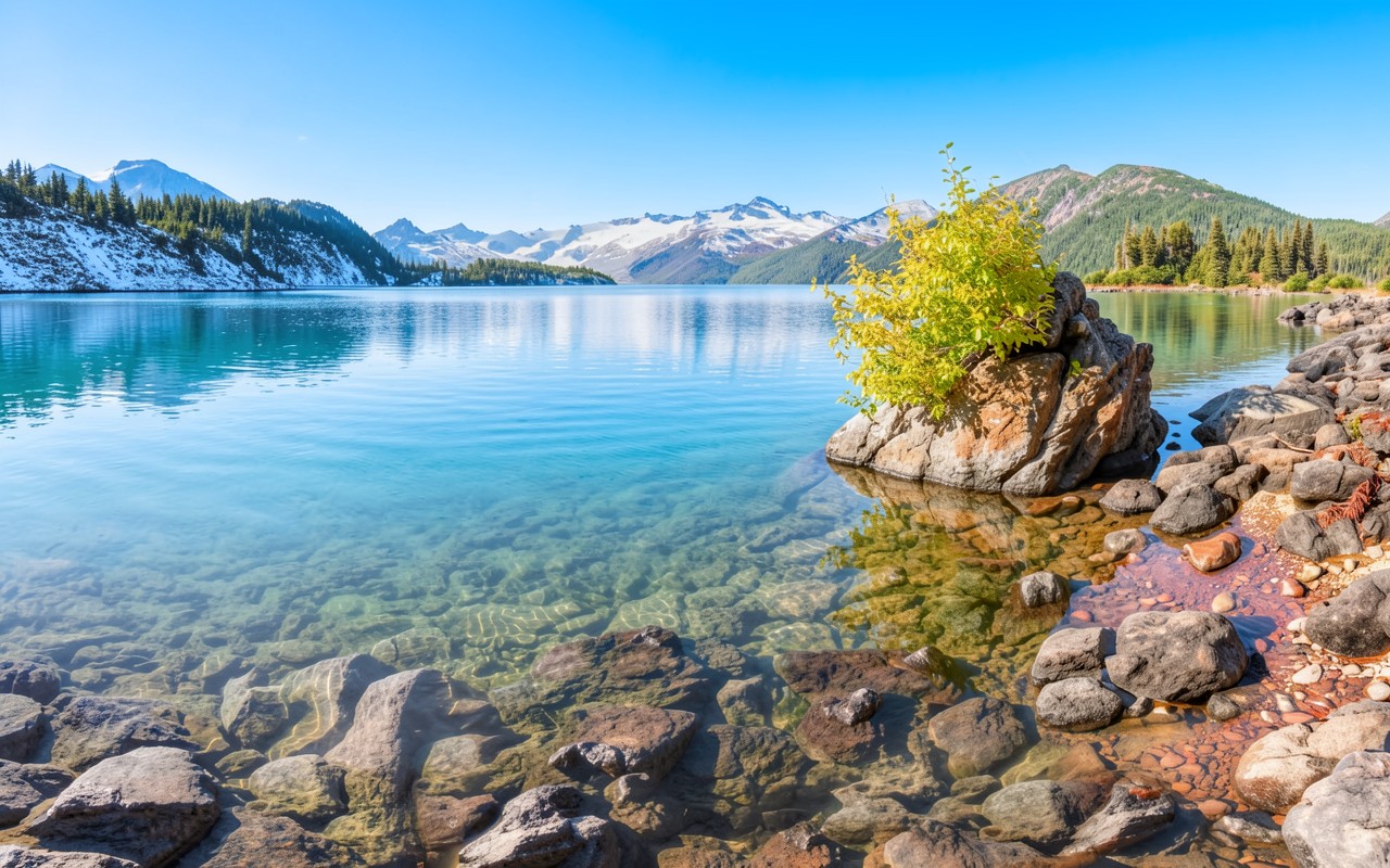 Горное озеро с прозрачной водой и камнями
