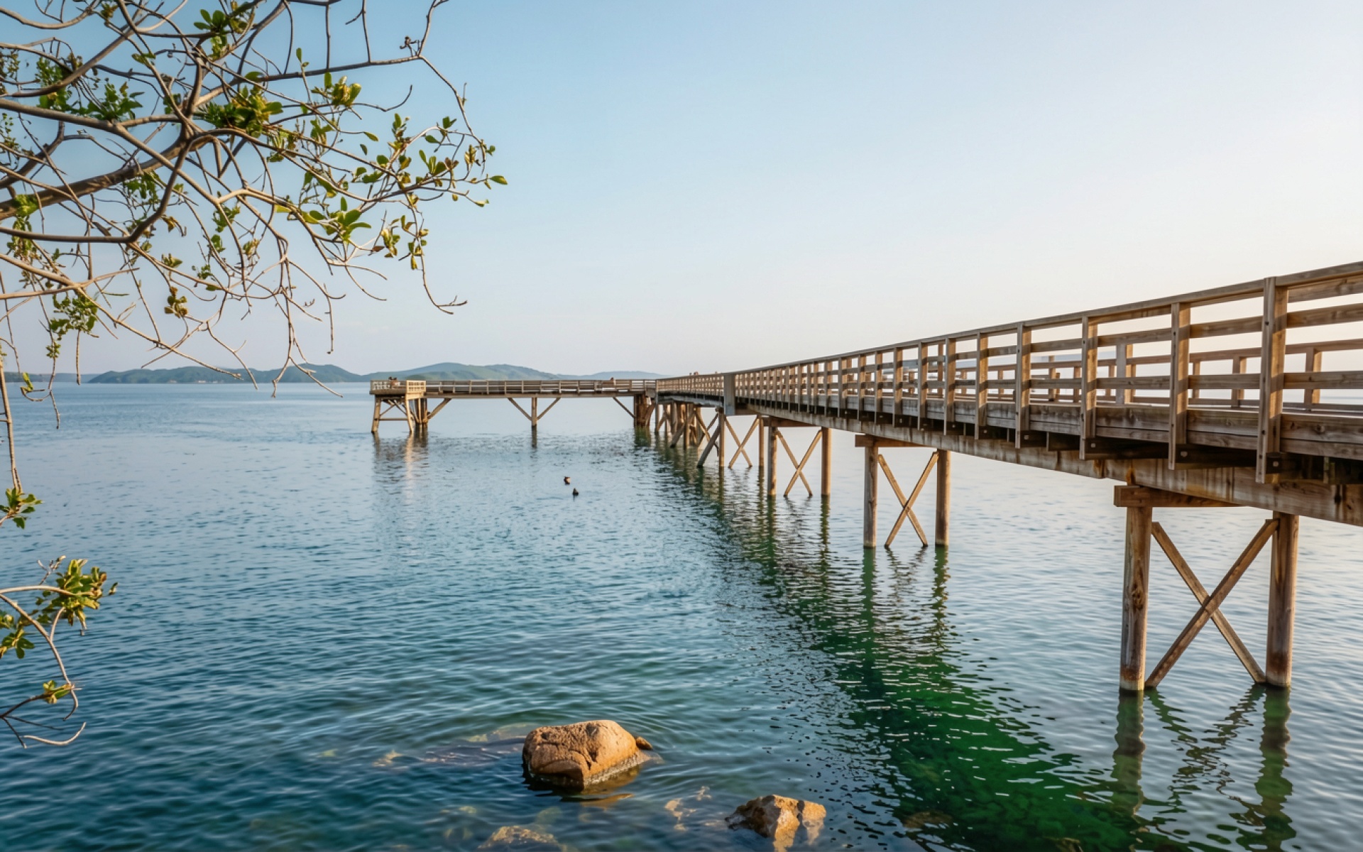 Деревянный пирс над бирюзовой водой океана