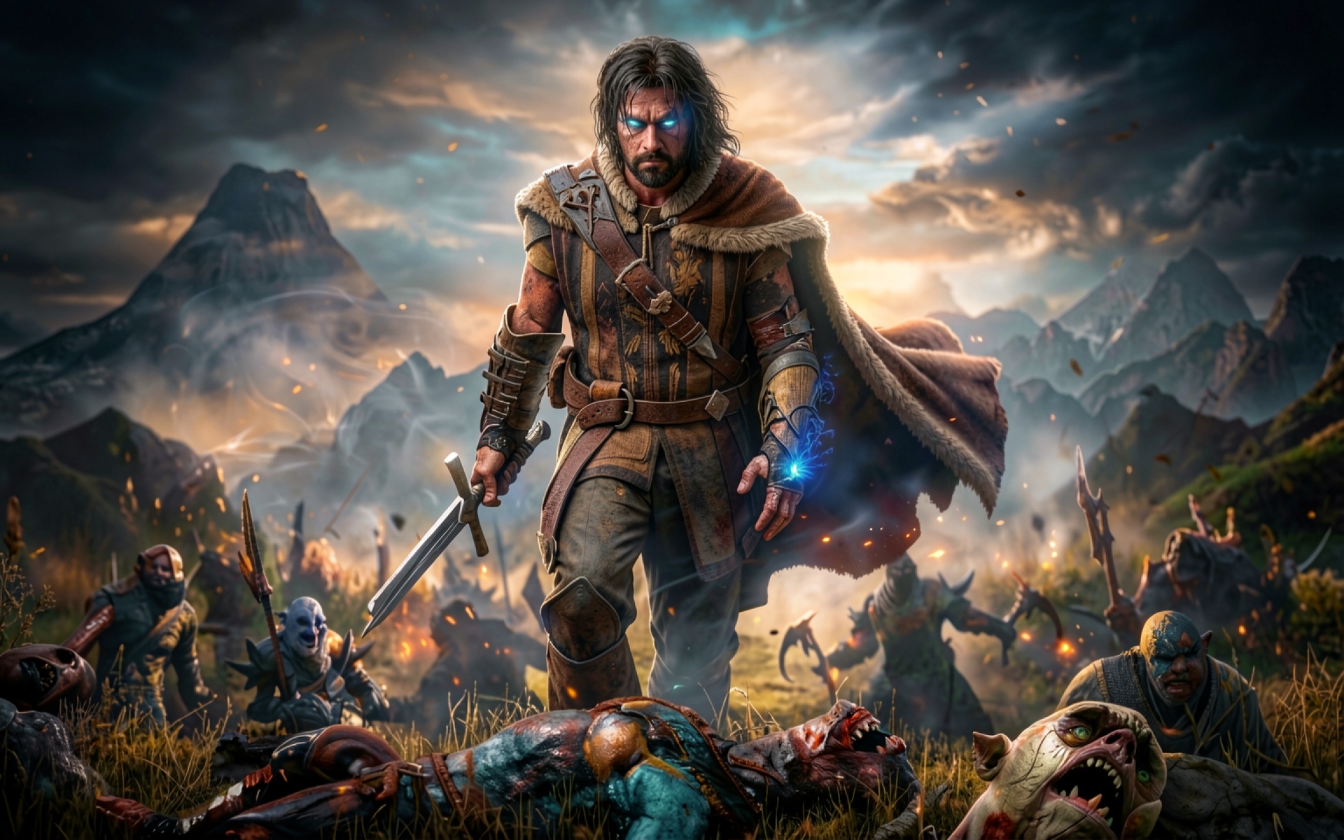 Воин с синими глазами в поле битвы