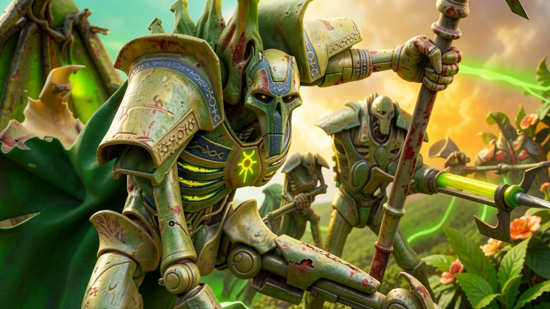 Воины Некронов в зеленой броне среди джунглей