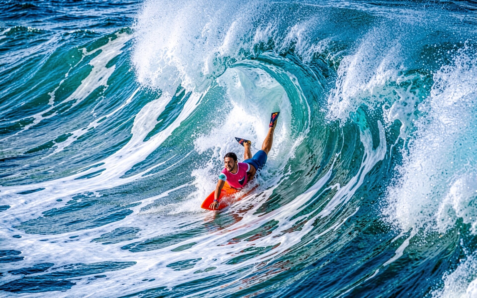 Серфер в бирюзовой волне океана днем