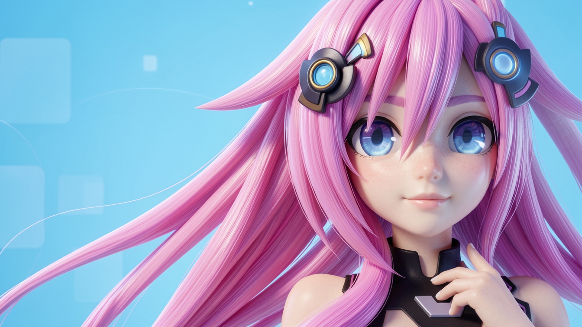 Аниме девушка с розовыми волосами голубой фон