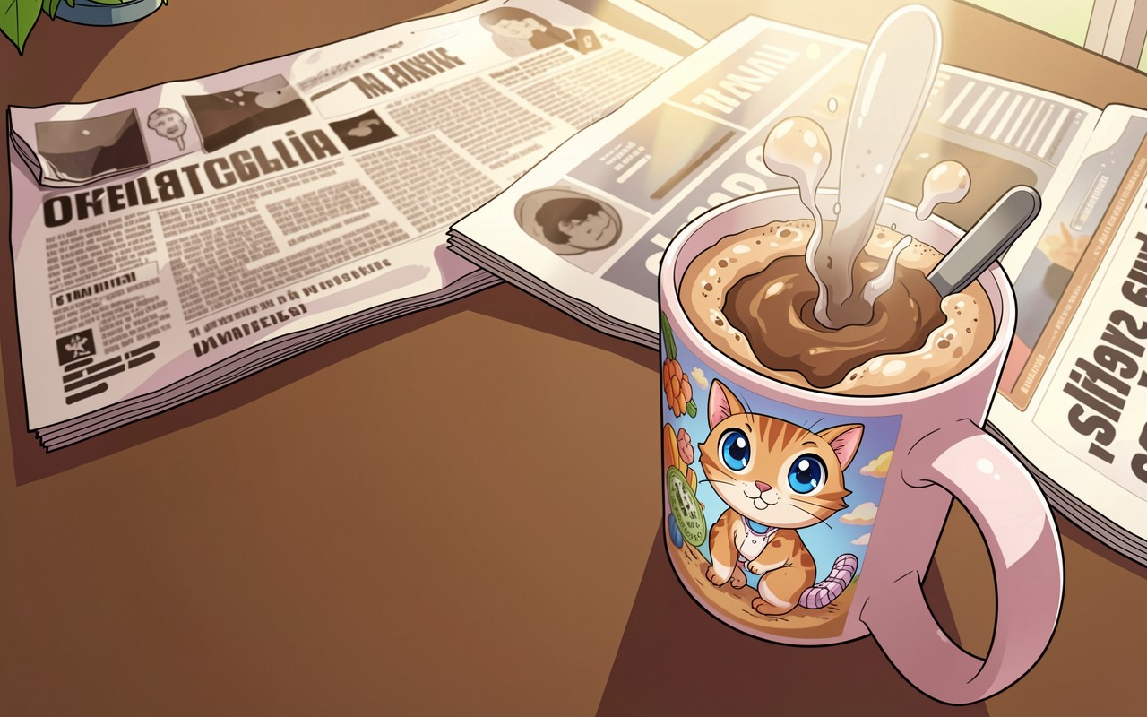 Кружка с рыжим котом и газета