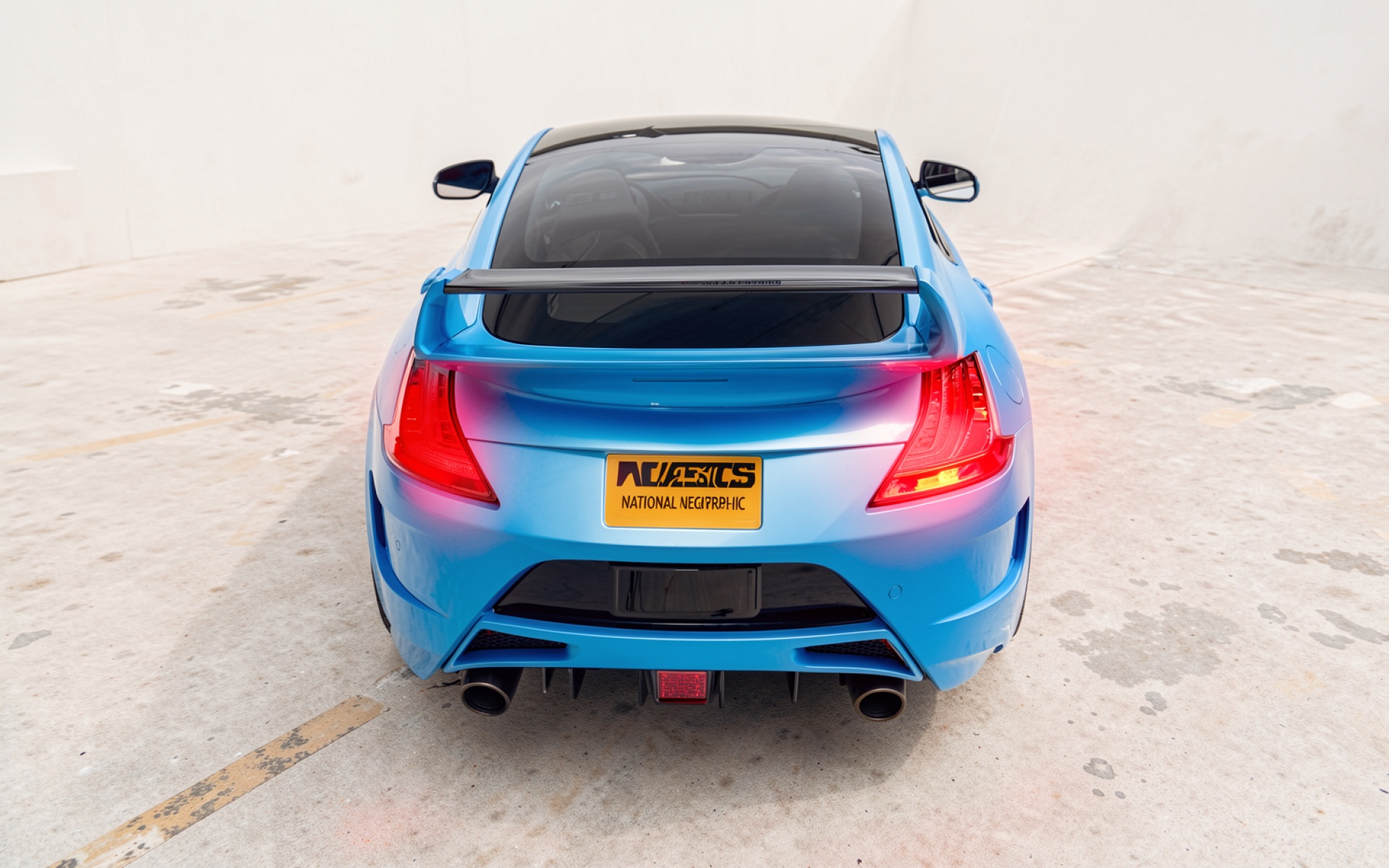 Голубой спортивный автомобиль Porsche в светлом гараже