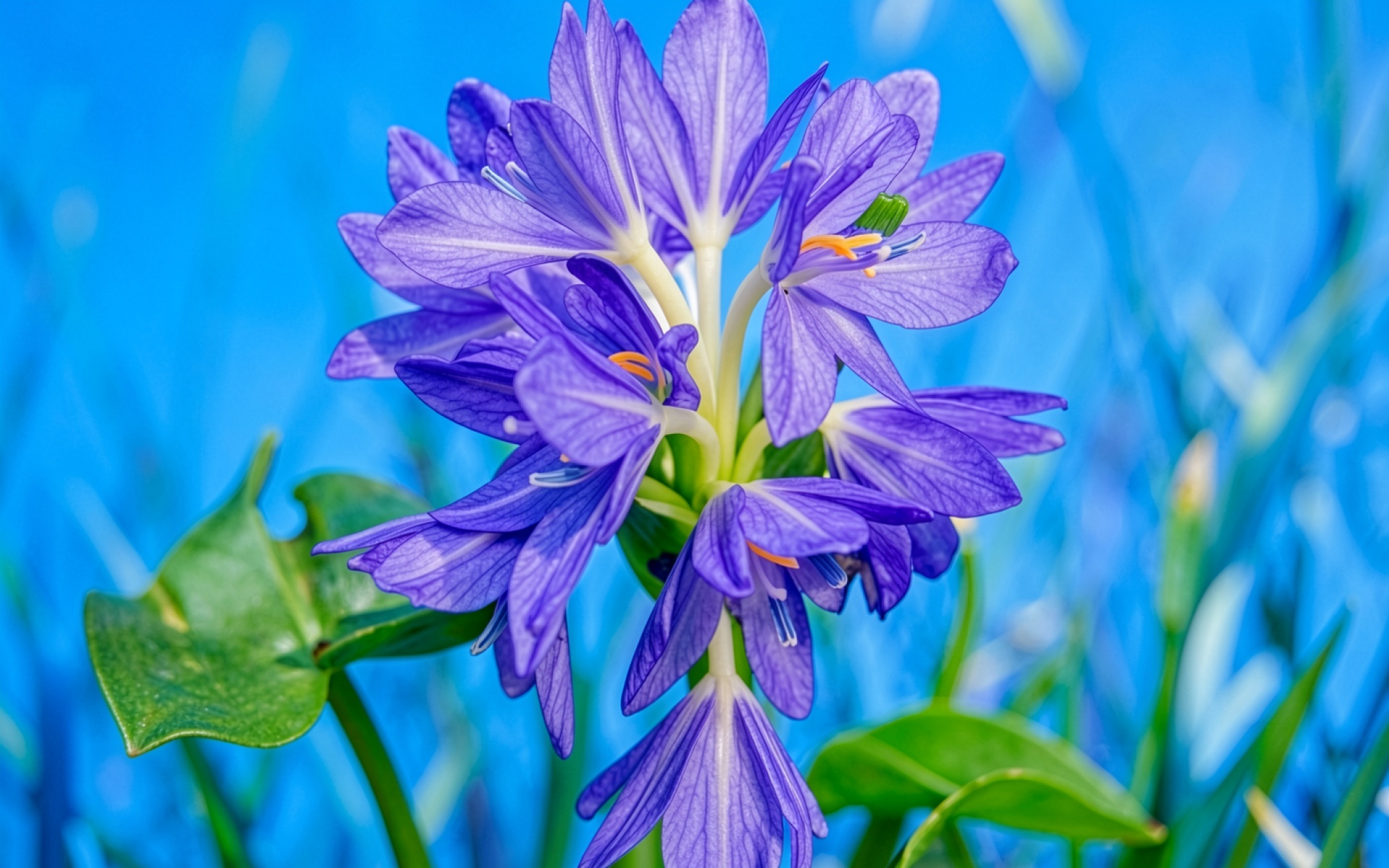 Фиолетовый цветок водяного гиацинта на синем фоне