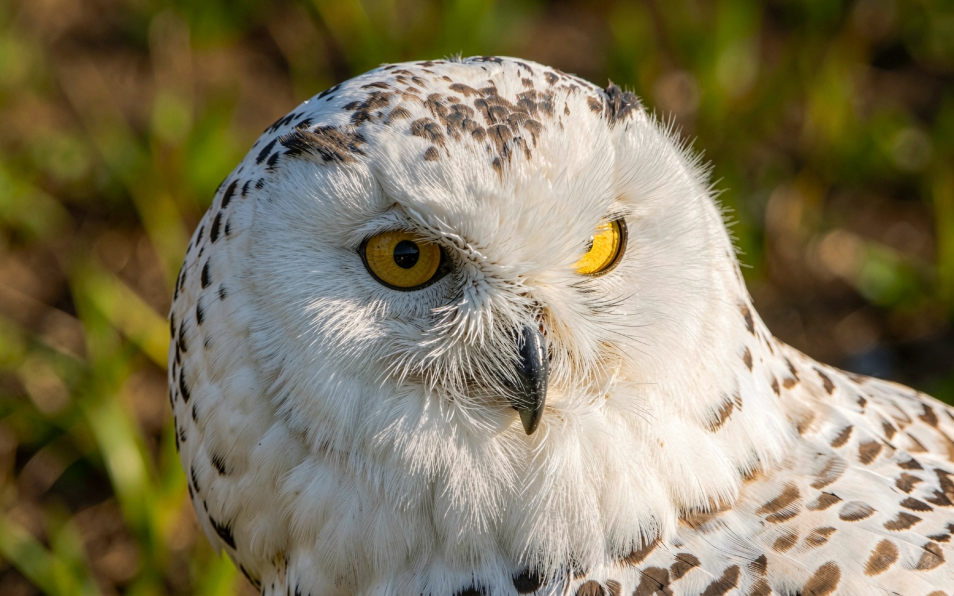 Белая полярная сова с желтыми глазами