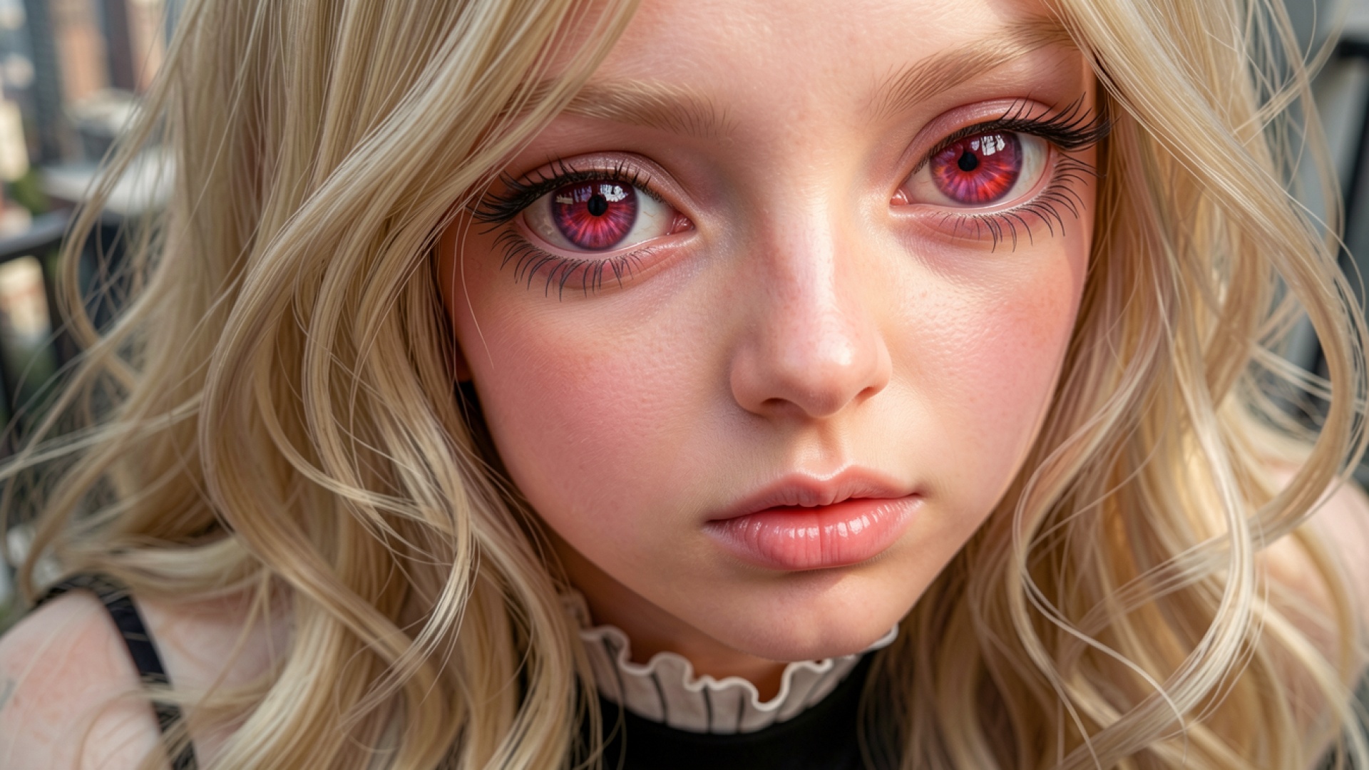 Девушка с красными глазами в светлых волосах
