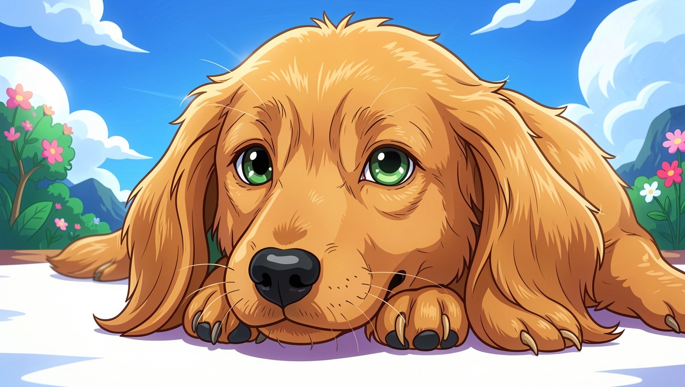 Рыжий щенок с зелеными глазами на природе