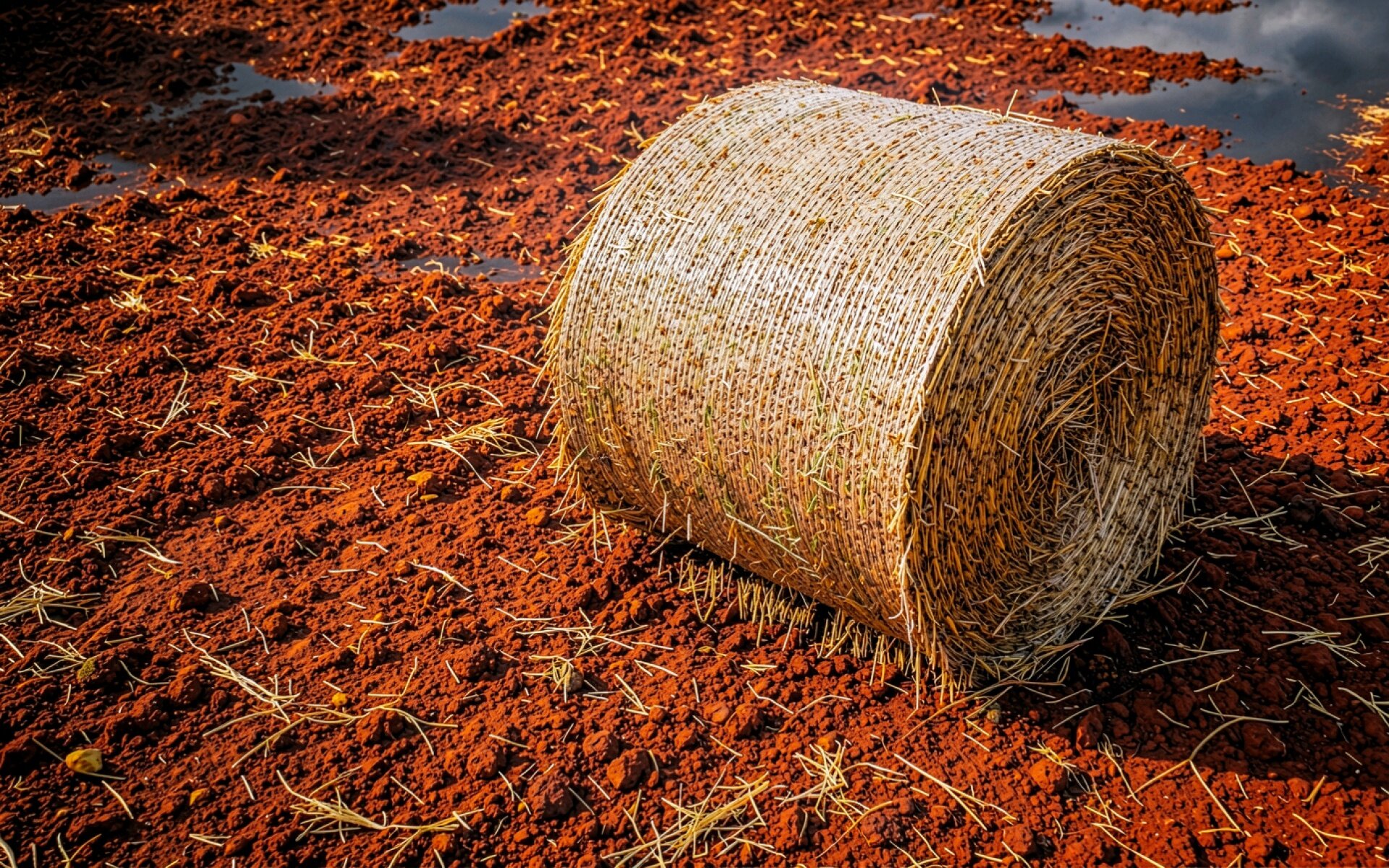 Рулон сена на красной глинистой почве