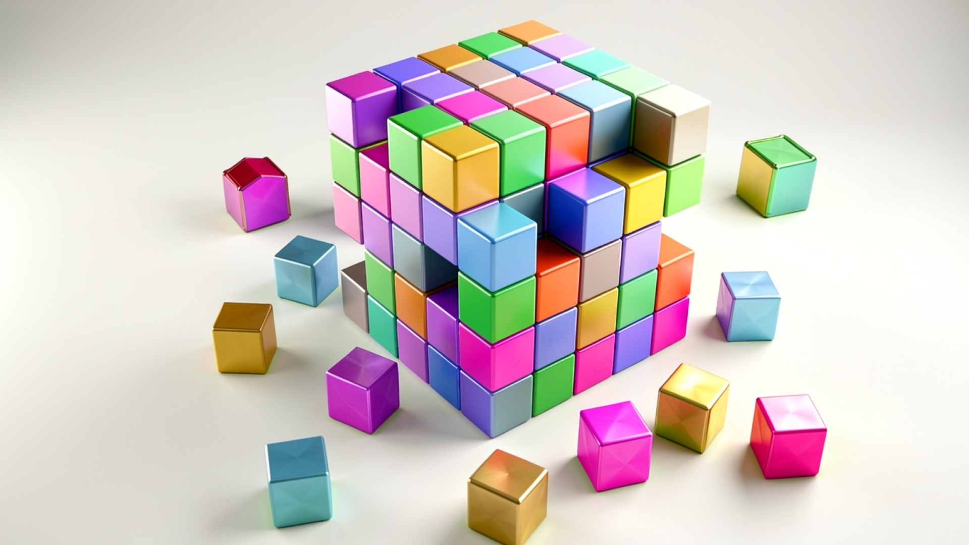 Разноцветные глянцевые кубы на белом фоне