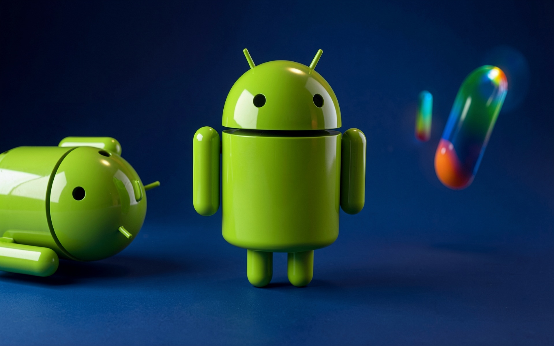 Робот Android зеленый глянцевый синий фон