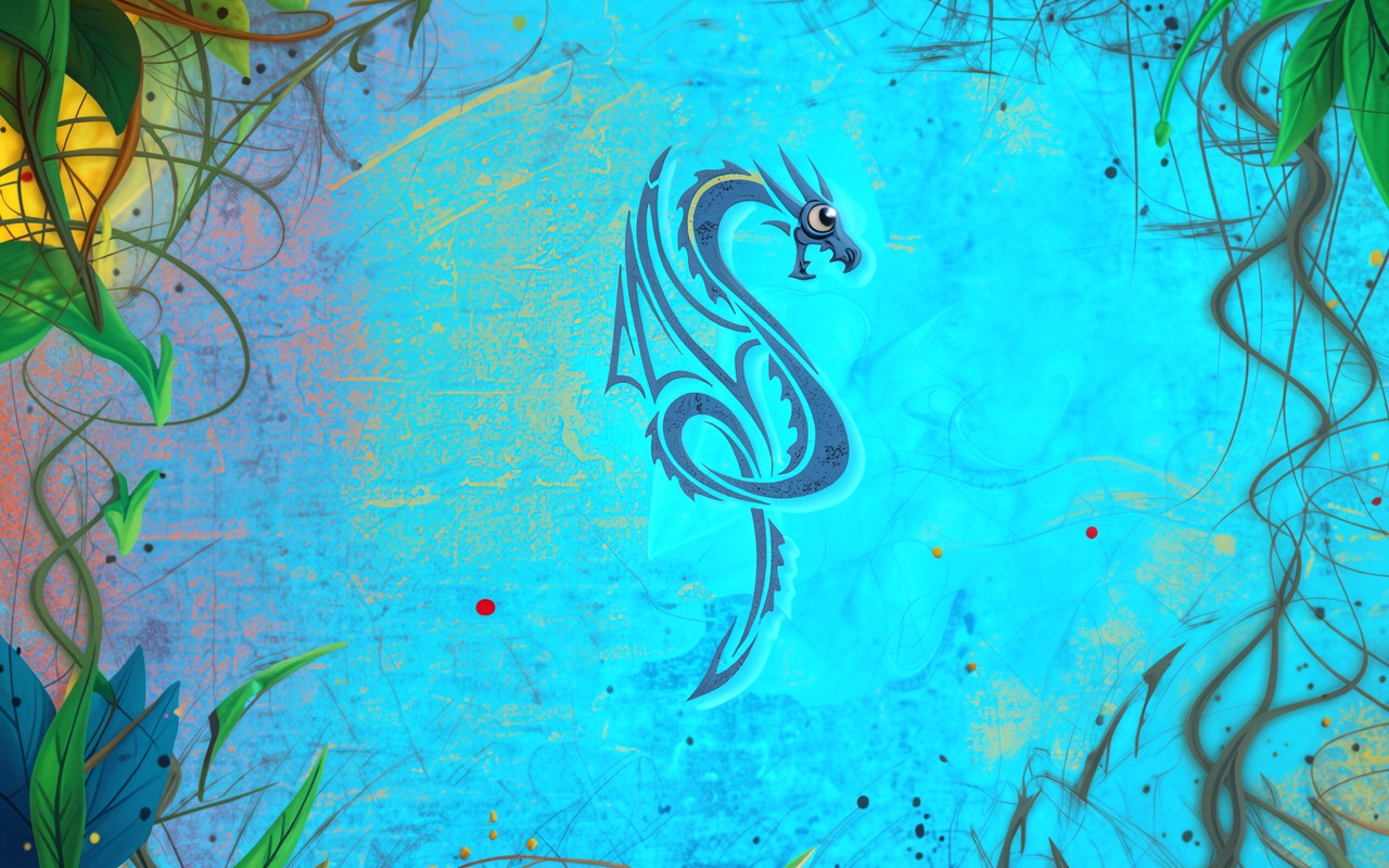 Голубой дракон в стиле фэнтези на абстрактном фоне