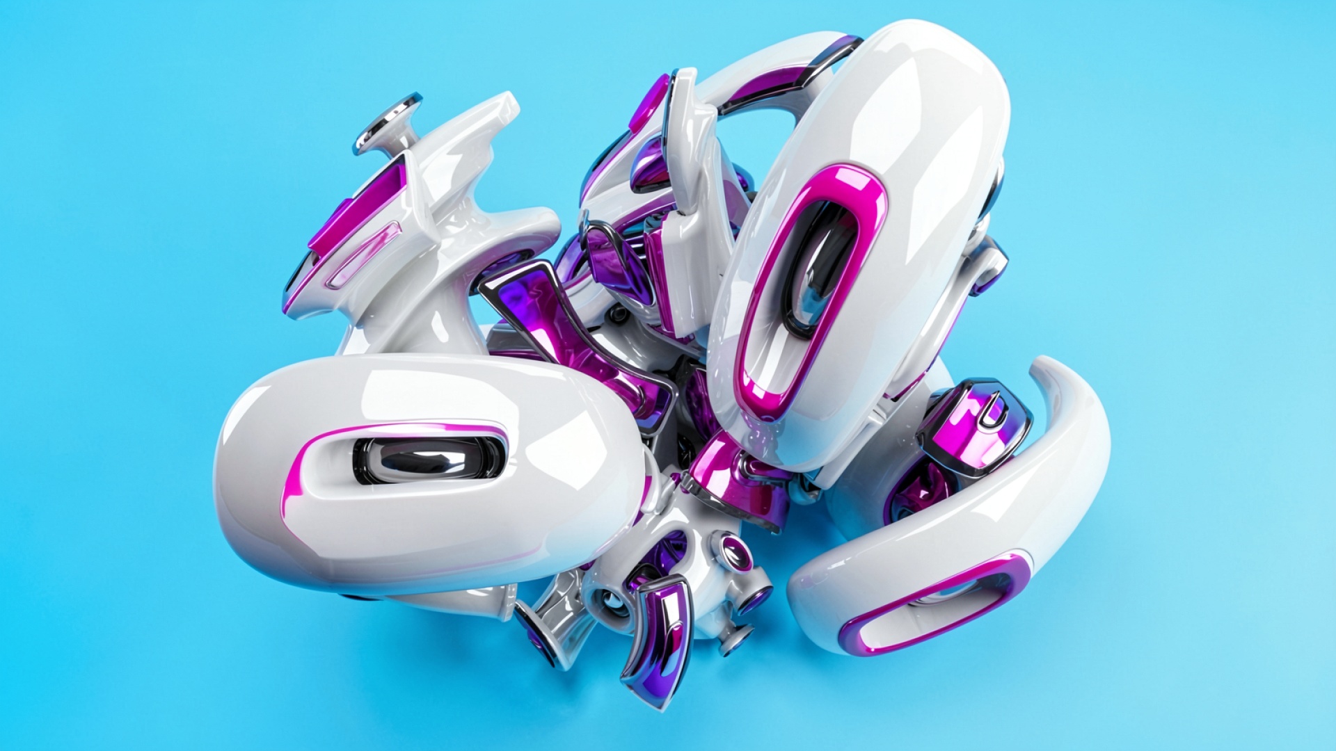 Футуристический белый робот розовые детали голубой фон