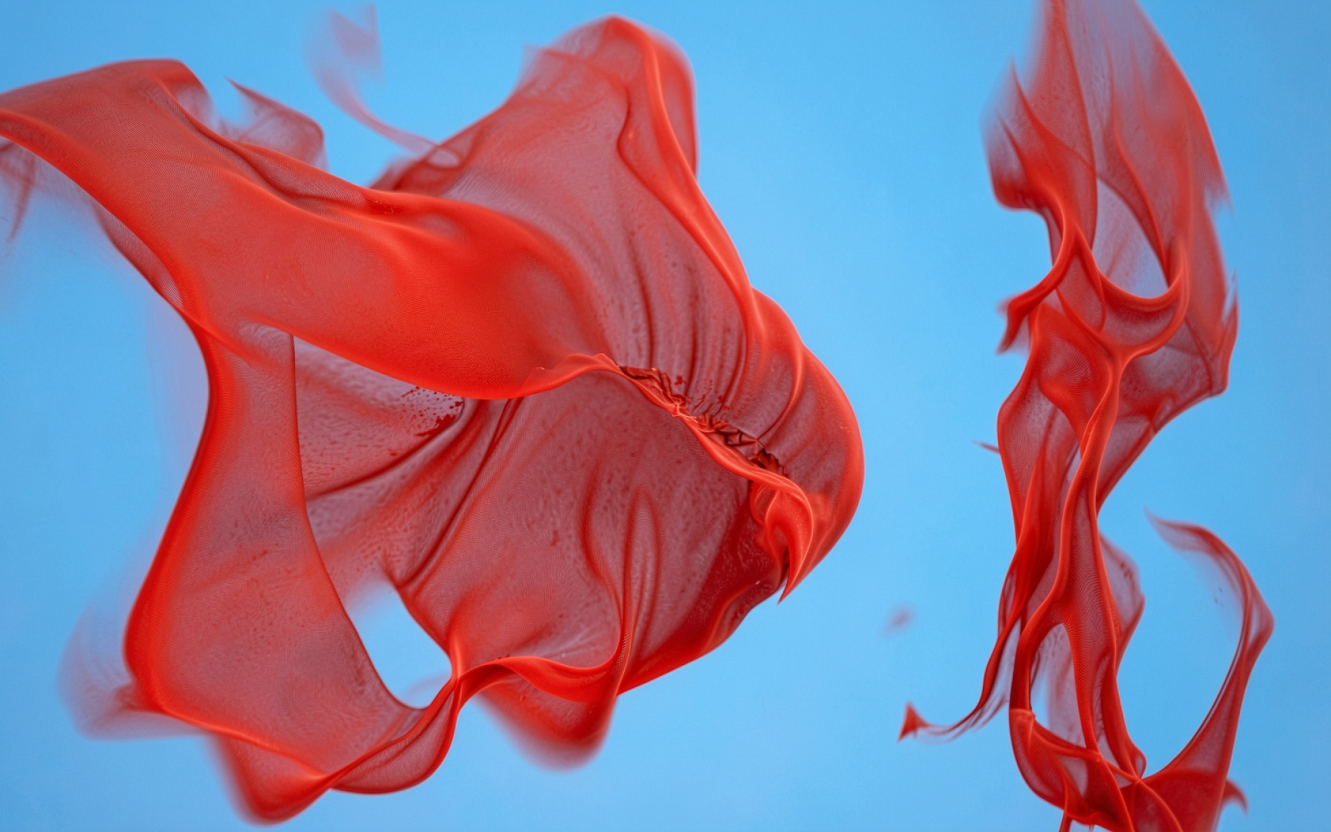 Красная ткань в полете на голубом фоне