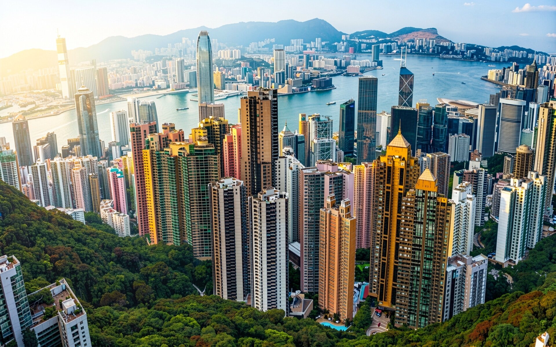 Панорама Гонконга с небоскребами и горами