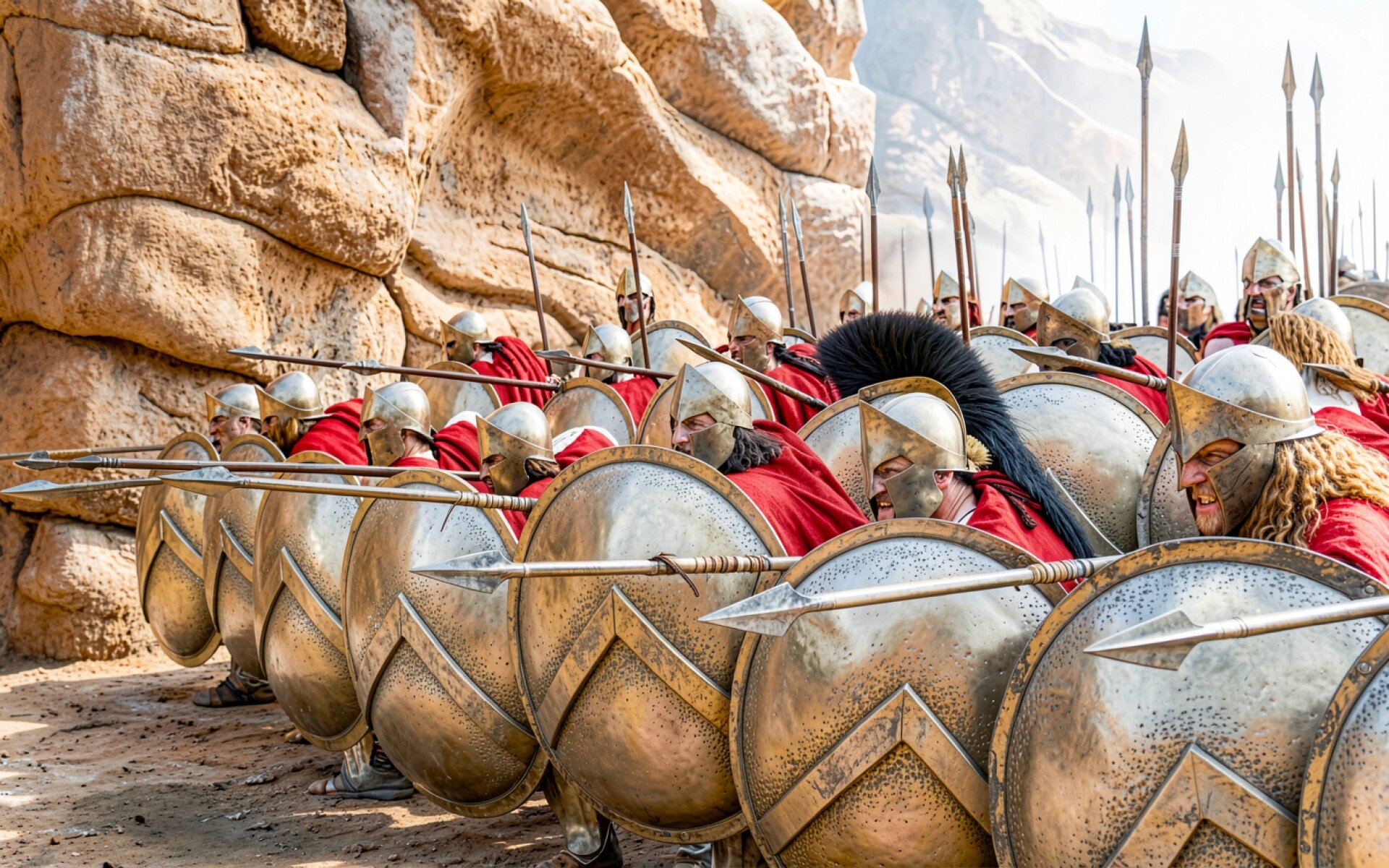 Спартанские воины в золотых доспехах в горах