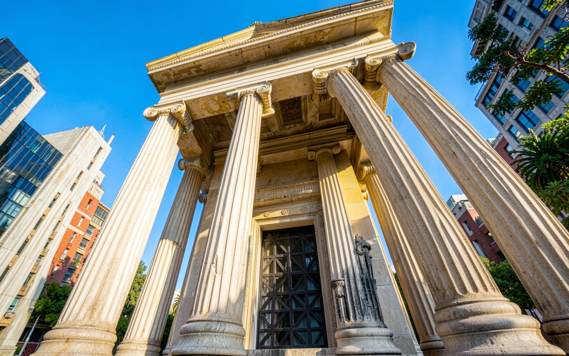 Античный храм в центре современного города