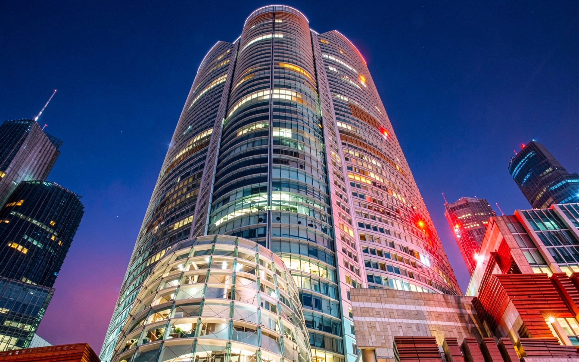 Небоскреб из стекла в ночном городе