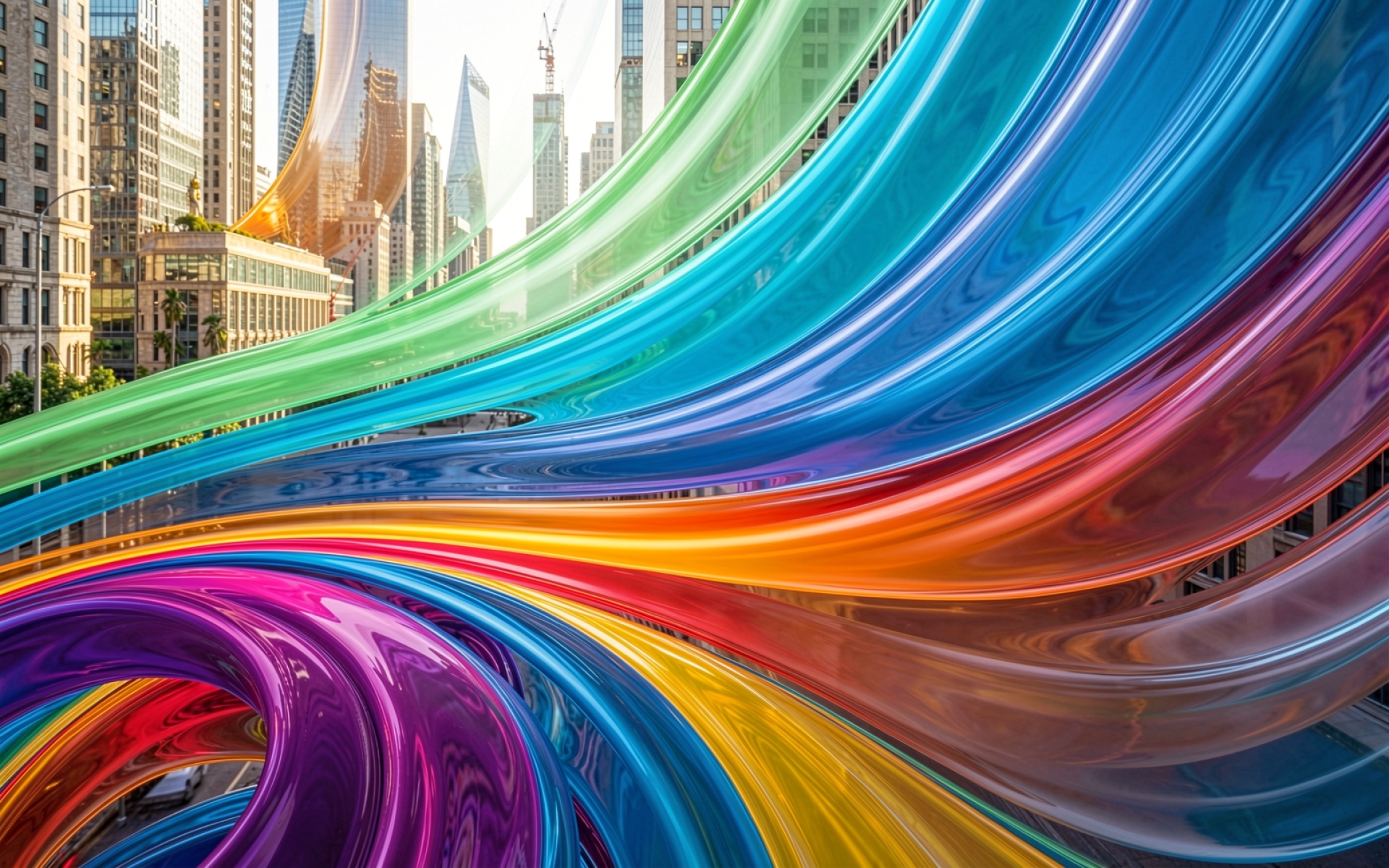Цветные глянцевые ленты в городском пейзаже
