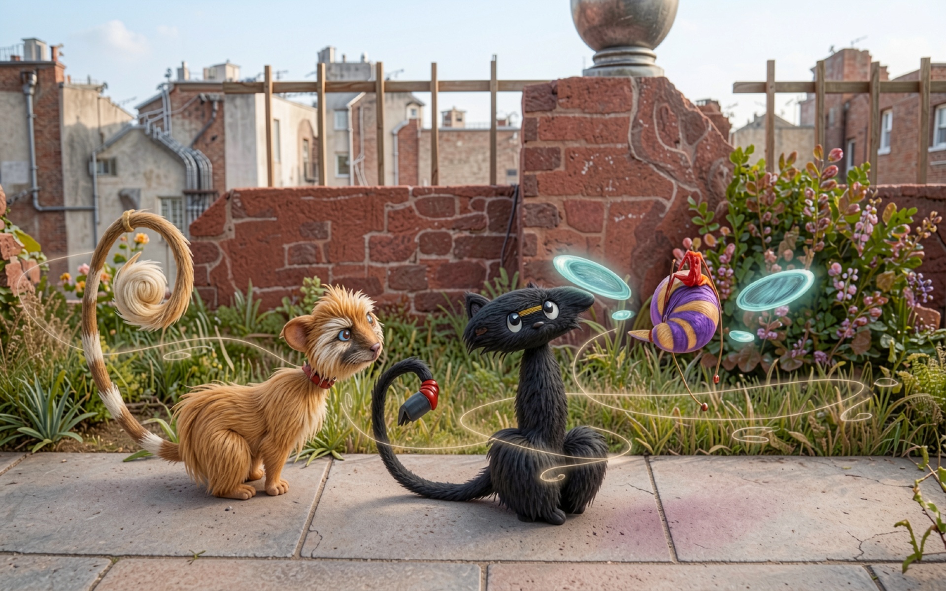 Рыжий и черный коты в городском саду