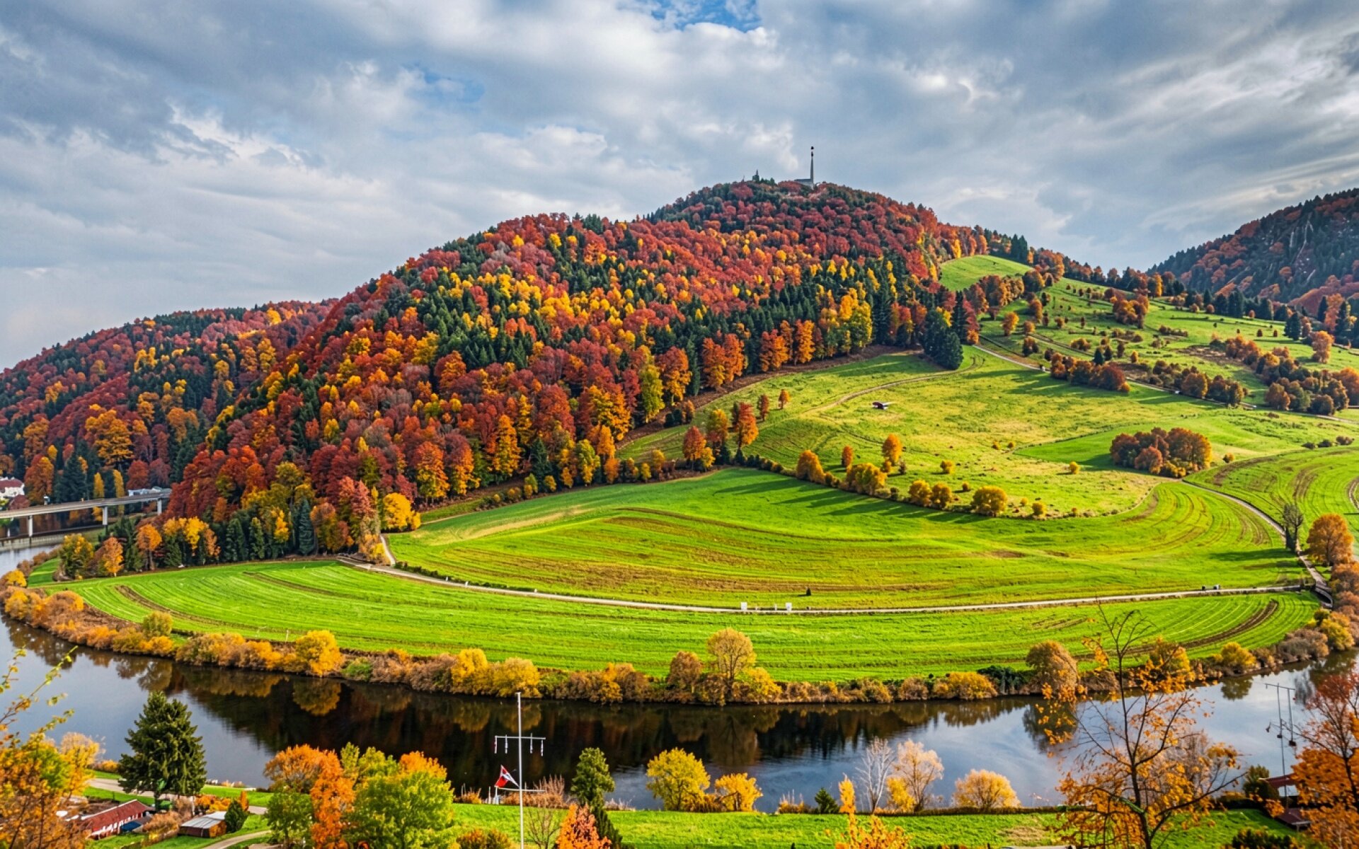 Осенний пейзаж с горой и рекой