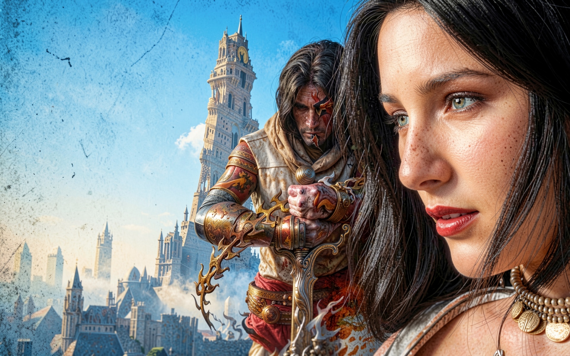 Фэнтези воины на фоне готического города