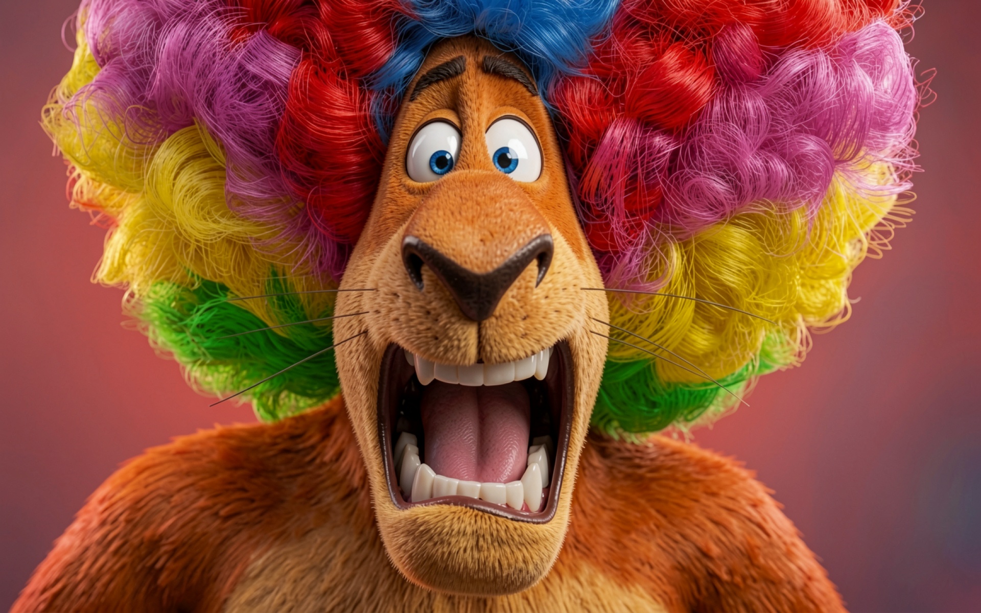 Лев с разноцветной гривой в стиле 3D